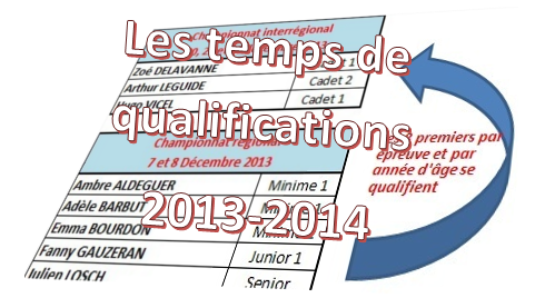 Ces dates correspondent aux compétitions qualificatives (Niveau départemental vers le niveau régional et ainsi de suite). Seuls les nageurs indiqués peuvent s'engager dans chacune des compétitions. Par exemple, un nageur de série régionale ne peut pas s'aligner au championnat départemental du 23 et 24 novembre.